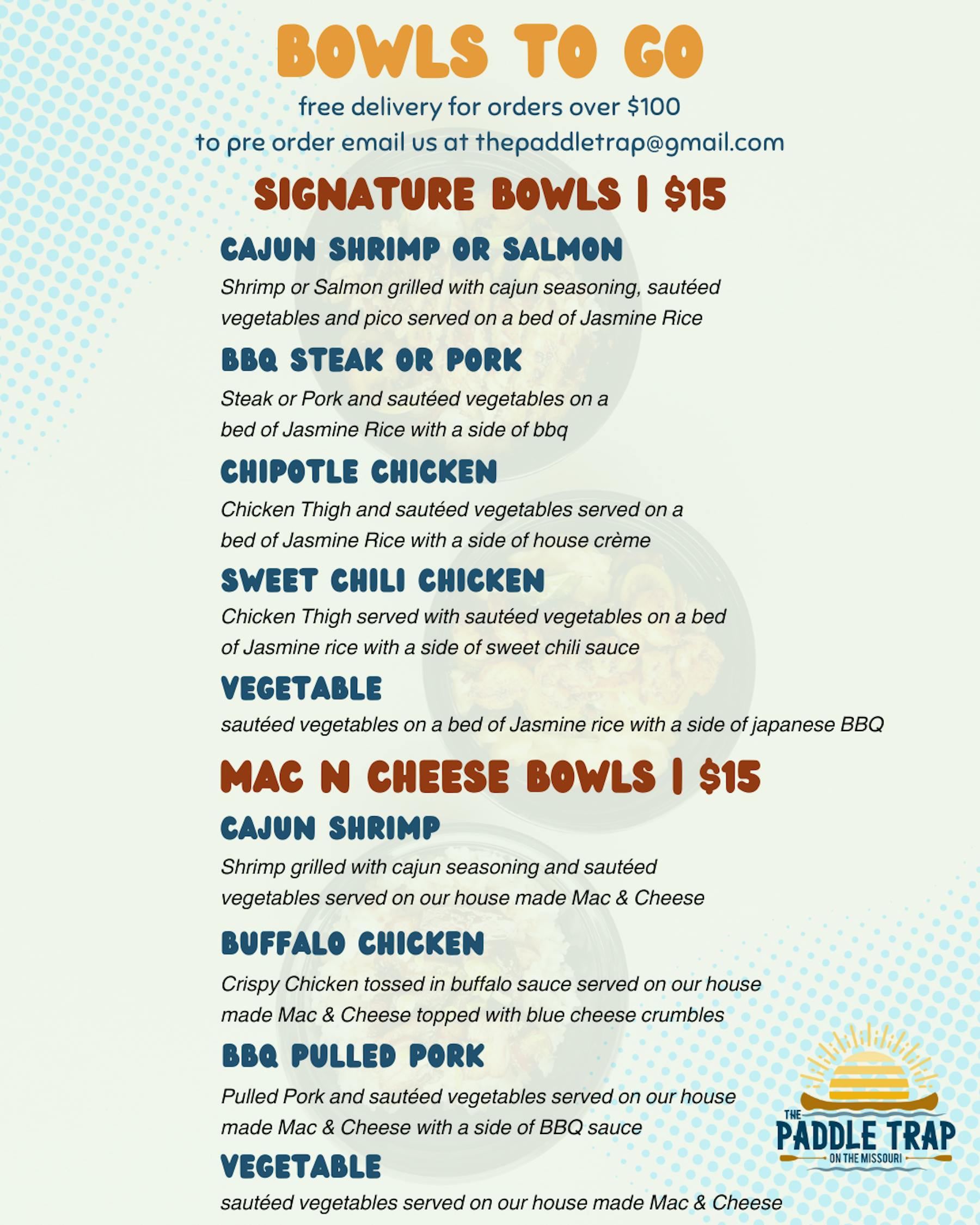 Do you have a larger group? We offer free delivery from one of our staff members when ordering $100 or more! You can also schedule your large order ahead of time by emailing Natalie at thepaddletrap@gmail.com